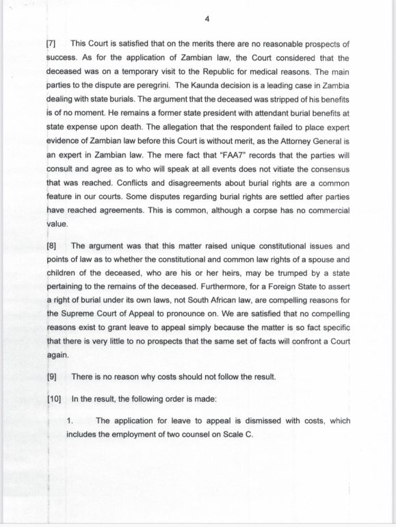 Appeal Court burial dispute Edgar Lungu former Zambian president High Court judgment personal wishes Pretoria High Court repatriation South Africa sovereignty State funeral Zambia Zambian government