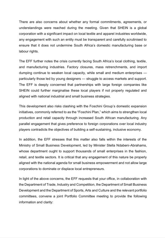 By the way those of u who have bought items confidently from SHEIN and Temu you are as guilty for not protecting the very fashion and textile industry you expect the government to support. 💔🇿🇦 every little action contributes to the bigger picture.